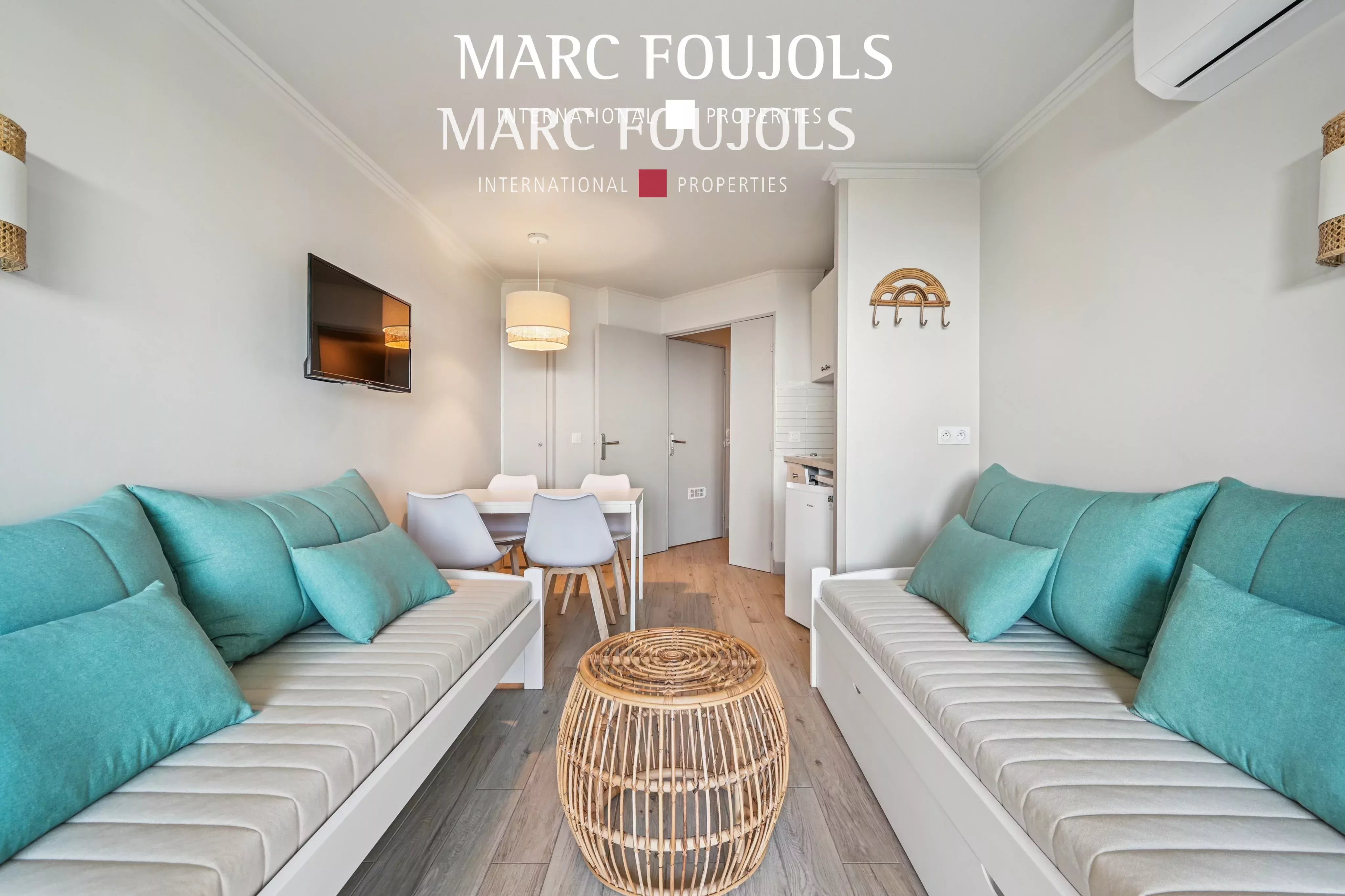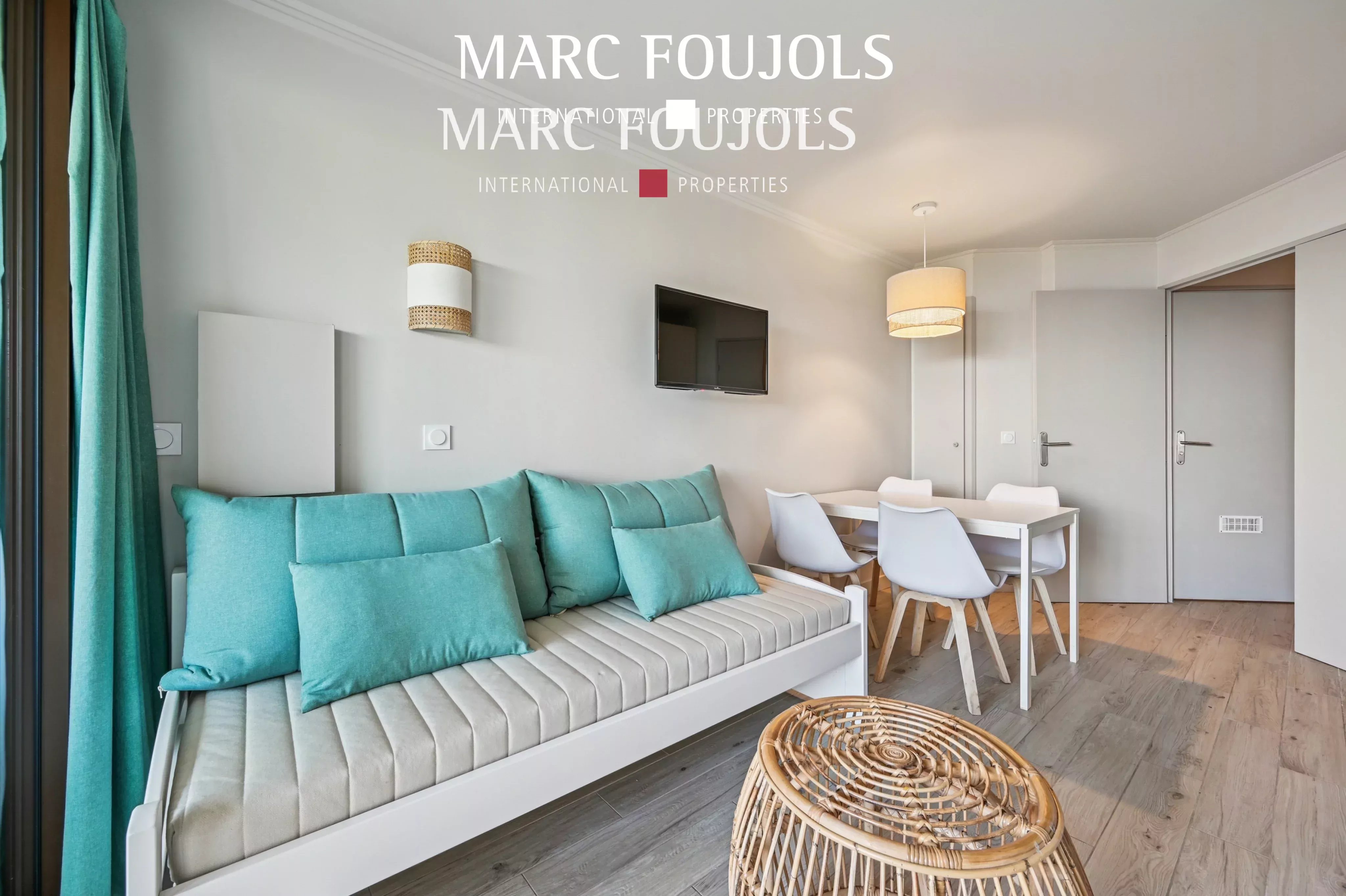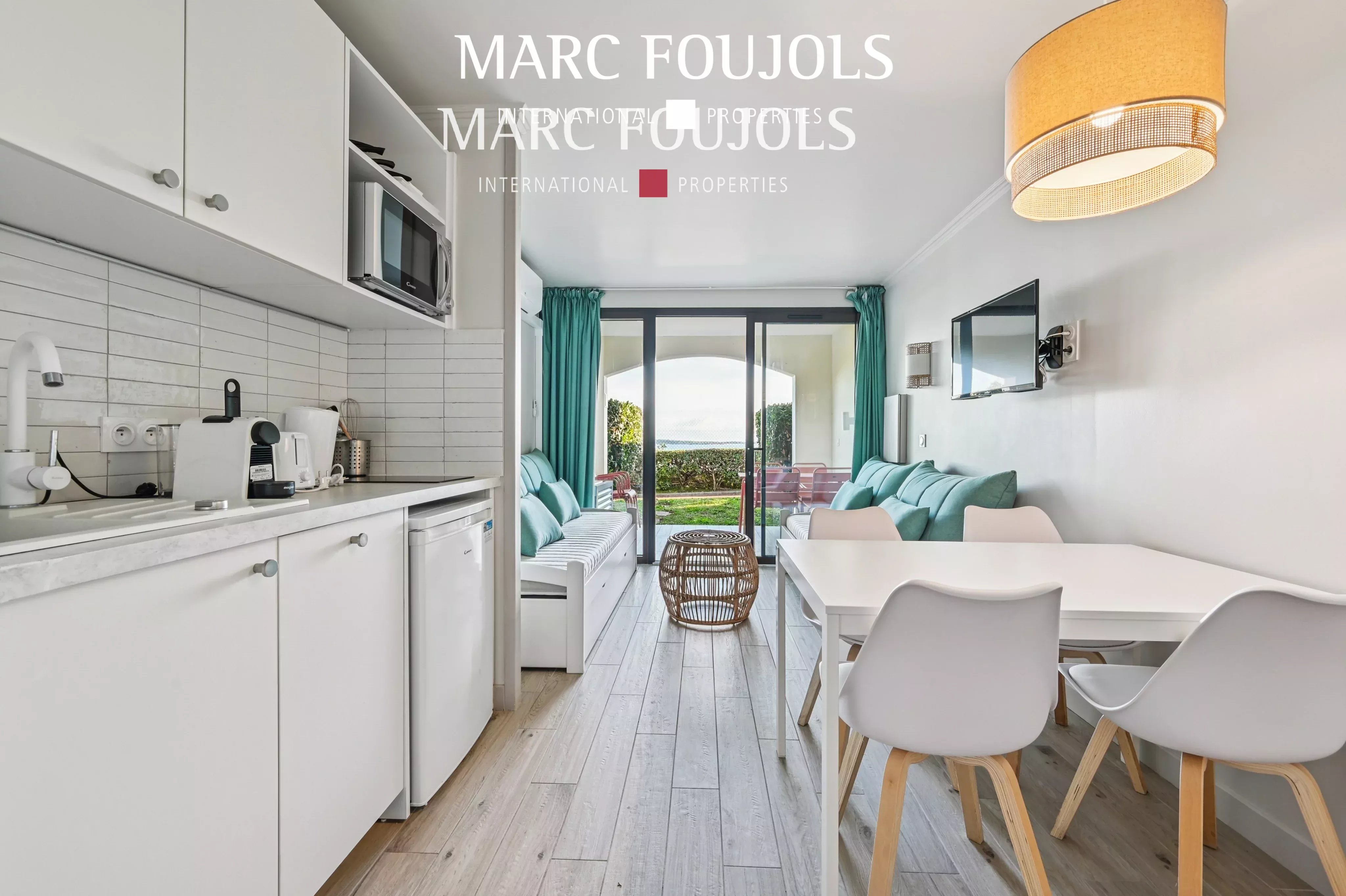 Ideal as a vacation home, this fully renovated and furnished property, located just 10 minutes' walk from the beach, offers exceptional amenities in a privileged setting. The residence features an infinity pool with sea view, tennis court, sports facilities, concierge service, restaurants and children's play areas. The walk-through apartment features a bright living room with sea view and open kitchen, opening onto a private terrace, a bedroom and a bathroom with toilet. Numerous built-in cupboards complete the layout. A parking space completes this property. Ideal for seasonal rental or as a vacation home.Details