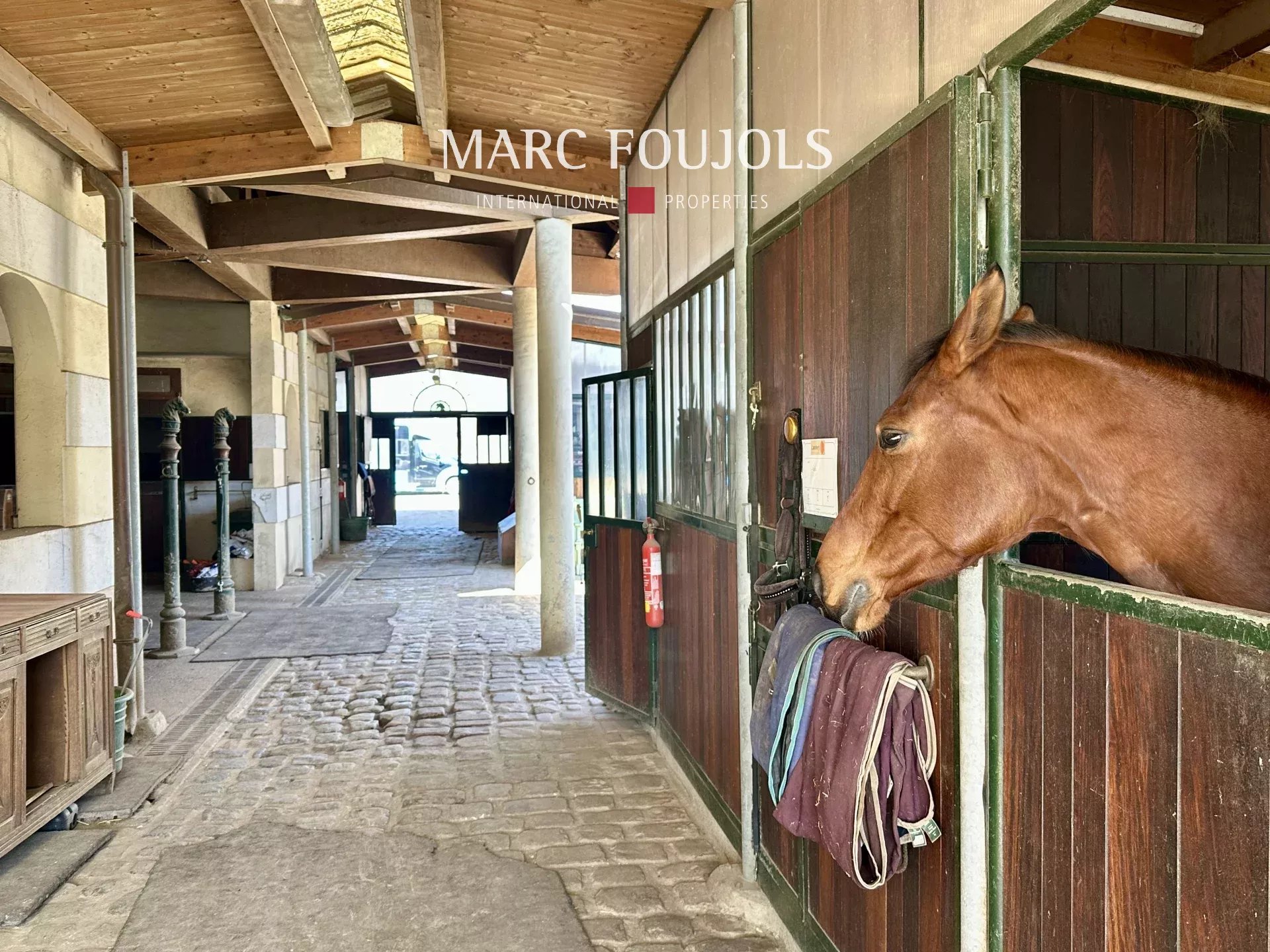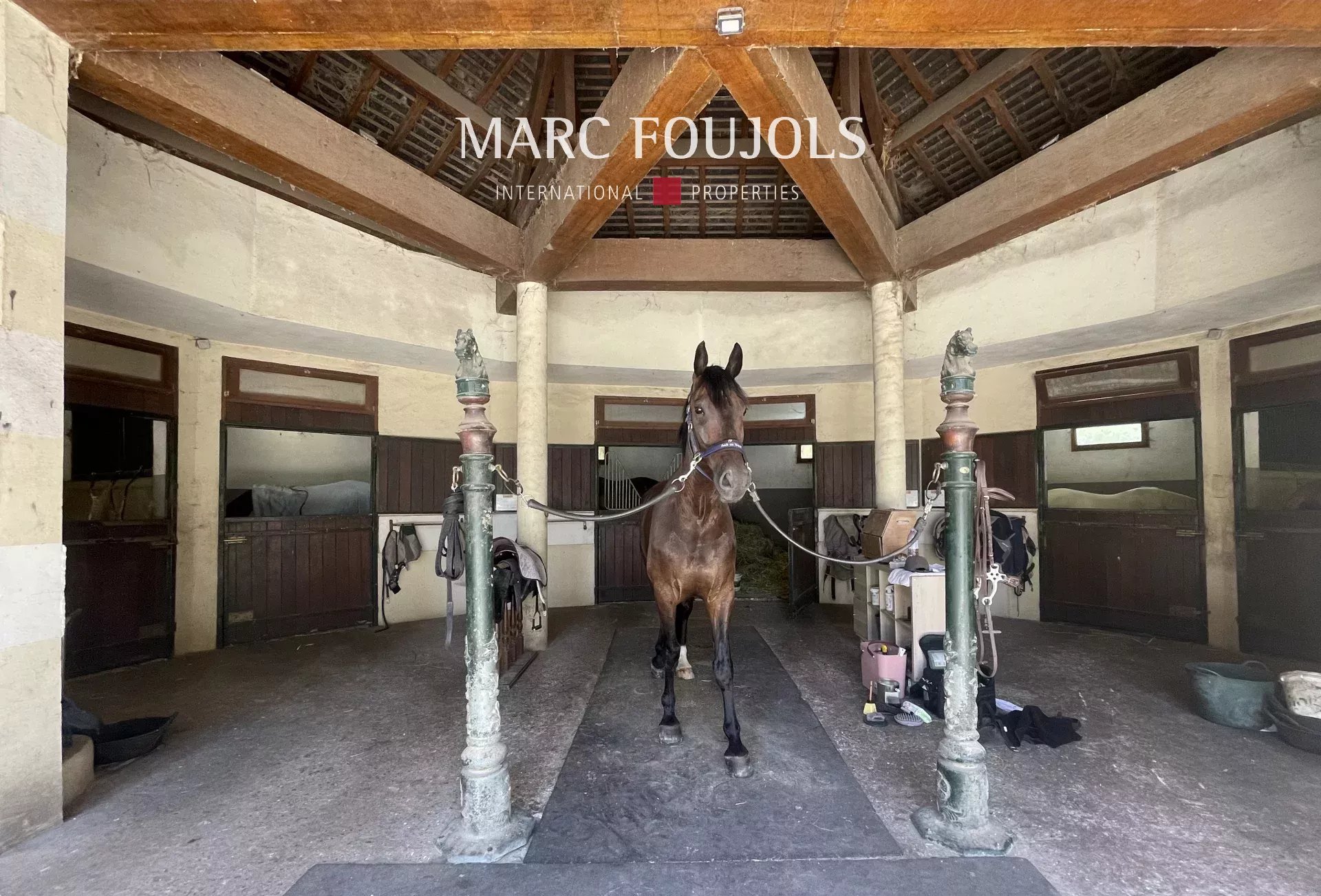 Exceptional property - Equestrian estate and prestigious residence The property comprises several buildings and facilities set in approximately 3 hectares of land, offering a unique living environment combining comfort, elegance and high-quality equestrian facilities. 1. Le Manoir - Main residence Built in 1970, the manor house has three levels of around 330 m² each: First floor (partially in English courtyard): Large storage room, laundry room, boiler room, indoor pool and hammam to be renovated. Second floor: Large entrance hall, double reception room, dining room, large fitted kitchen with pantry, dressing room, plus three bedrooms, each with bathroom or shower room. Second floor: Large cathedral-framed living room with monumental staircase, air-conditioned master suite with bathroom, shower room, two dressing rooms and two toilets, plus three further bedrooms with dressing rooms and en suite bathrooms. 2. Janitor's cottage Detached house comprising a living room and two bedrooms, each with its own bathroom. 3. Equestrian facilities Stables with 11 boxes Fibre-treated riding arena and career 13 paddocks: 7 grass, 6 earth and sand 4. Wooded park Superb landscaped grounds of around 3 hectares, offering peace and privacy. 5. Wooden chalet Small, detached chalet, ideal for relaxation or hospitality.Details