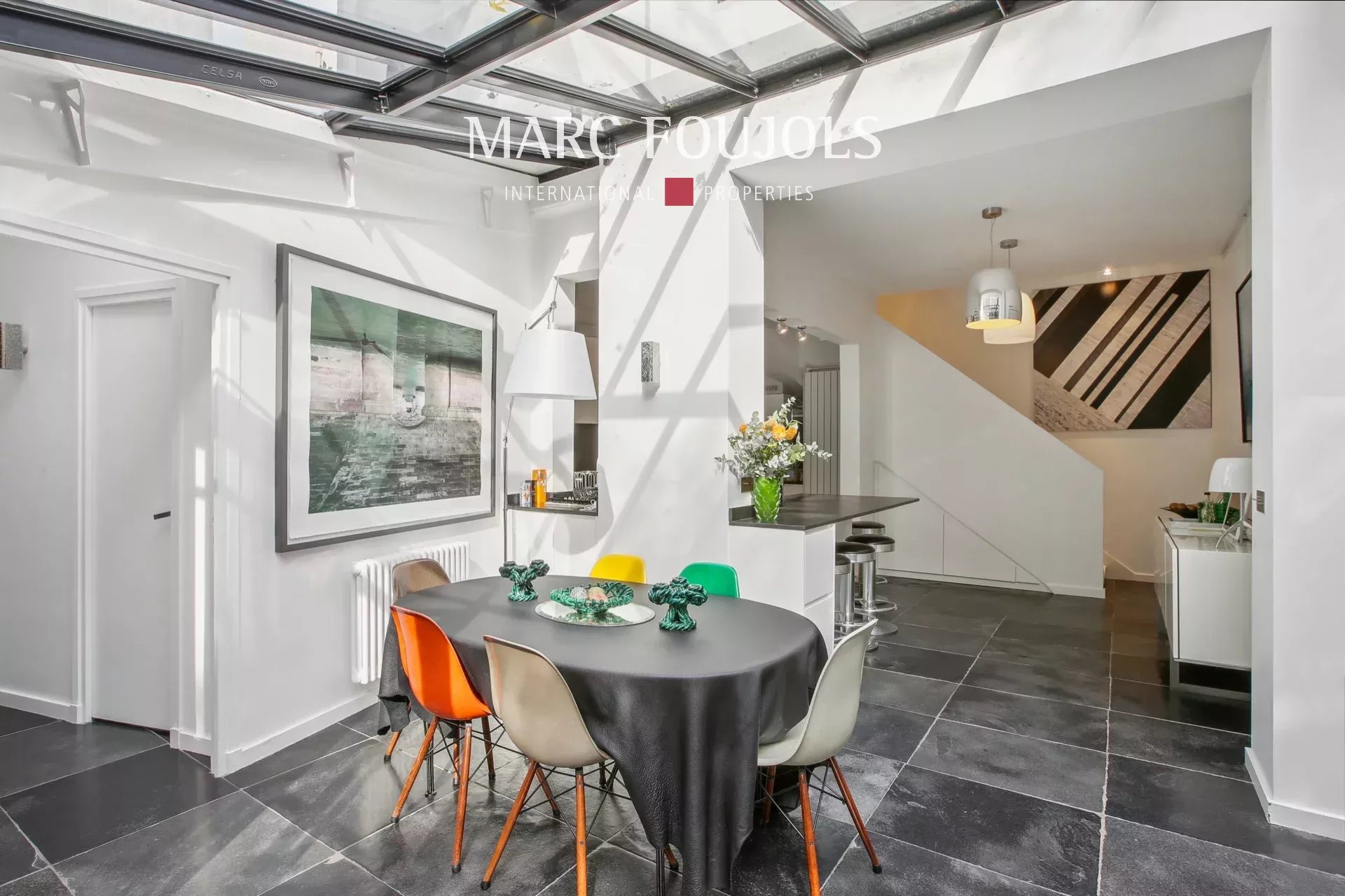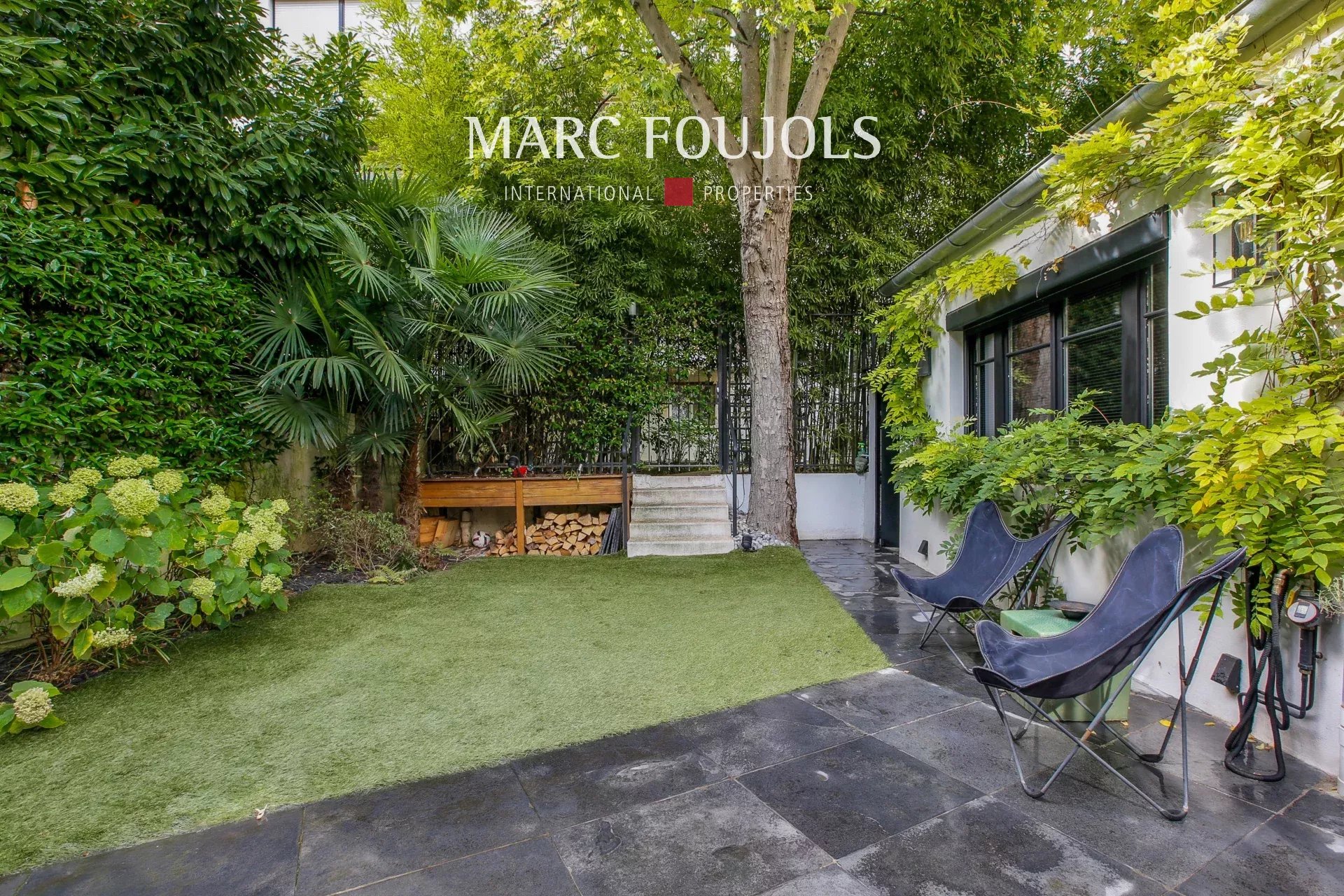 Ideally located in Neuilly, on the edge of Levallois and just a stone's throw from Ile de la Jatte, this delightful renovated house dating from 1800 and its 80m² wooded garden are set in a secluded setting. It comprises a terrace giving access to a luminous veranda, leading to a large living room with fireplace, a dining room with open fitted kitchen, an independent bedroom with bathroom, and a guest toilet. Upstairs, a bedroom with en suite bathroom and toilet, and a master suite with shower room. The basement includes a 24 m² laundry room, a wine cellar and a cellar. This property, in perfect condition, benefits from absolute peace and quiet, not overlooked, and rare luminosity.Details