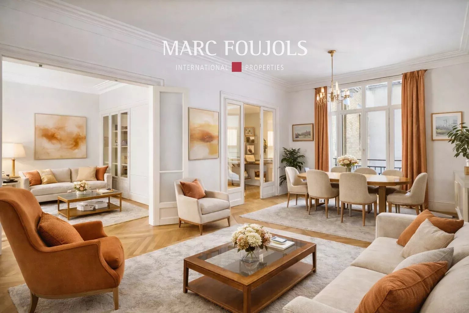 Located in a sought-after district of Neuilly-sur-Seine, Square Captain Claude Barrès, within a secure residence (code, intercom, caretaker), well-maintained from the 1930s, Marc Foujols offers for sale this family apartment with an area of 157m² on the third floor with elevator. Close to all amenities ("Les Sablons" Metro station line 1, and many shops), it consists of a pleasant entrance hall, a double living room (about 46m²) with fireplace and unobstructed view, three bedrooms, and an office (18.08m² - 18.65m² - 9.01m² - 7.76m²), two bathrooms, a laundry room, two toilets, and a cellar. This property enjoys four exposures, with the East being the main one. This apartment has retained its old charm, thanks to its woodwork, high ceilings, and rounded windows. Work to be planned. 2025 Property Taxes: €2,200 Quarterly charges: €2,500 (including heating) Comfortable parking in the building for sale additionally at the price of €40,000.Details