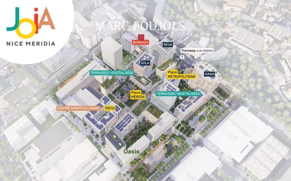 Last opportunity (back on sale) in the emblematic residence designed by the famous Japanese architect Sou Fujimoto, erected over 17 floors and located in the heart of the responsible Joia eco-district, Nice's future business center. The apartment is on the 16th floor (penultimate floor), accessible by elevator. It comprises a living room with fully-equipped open kitchen, a 37.04 m² terrace, two bedrooms, a bathroom and a toilet. A basement parking space completes this exceptional property. Geothermal heating and air conditioning, low service charges. Delivery scheduled for 1st quarter 2026. Shared gym and large terrace (with kitchen) on the 9th floor. Méridia tramway at the foot of the building. 4 stations from Nice international airport and a 5-minute walk from the International School of Nice.Details