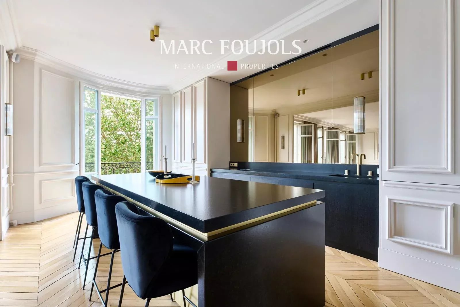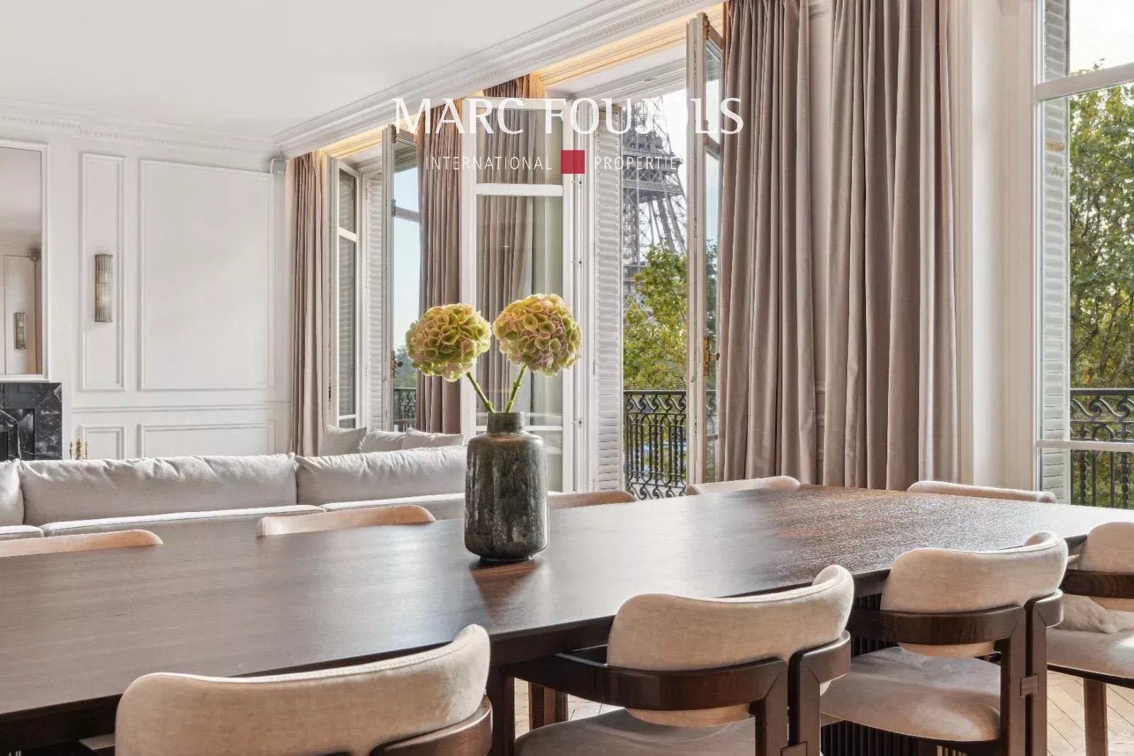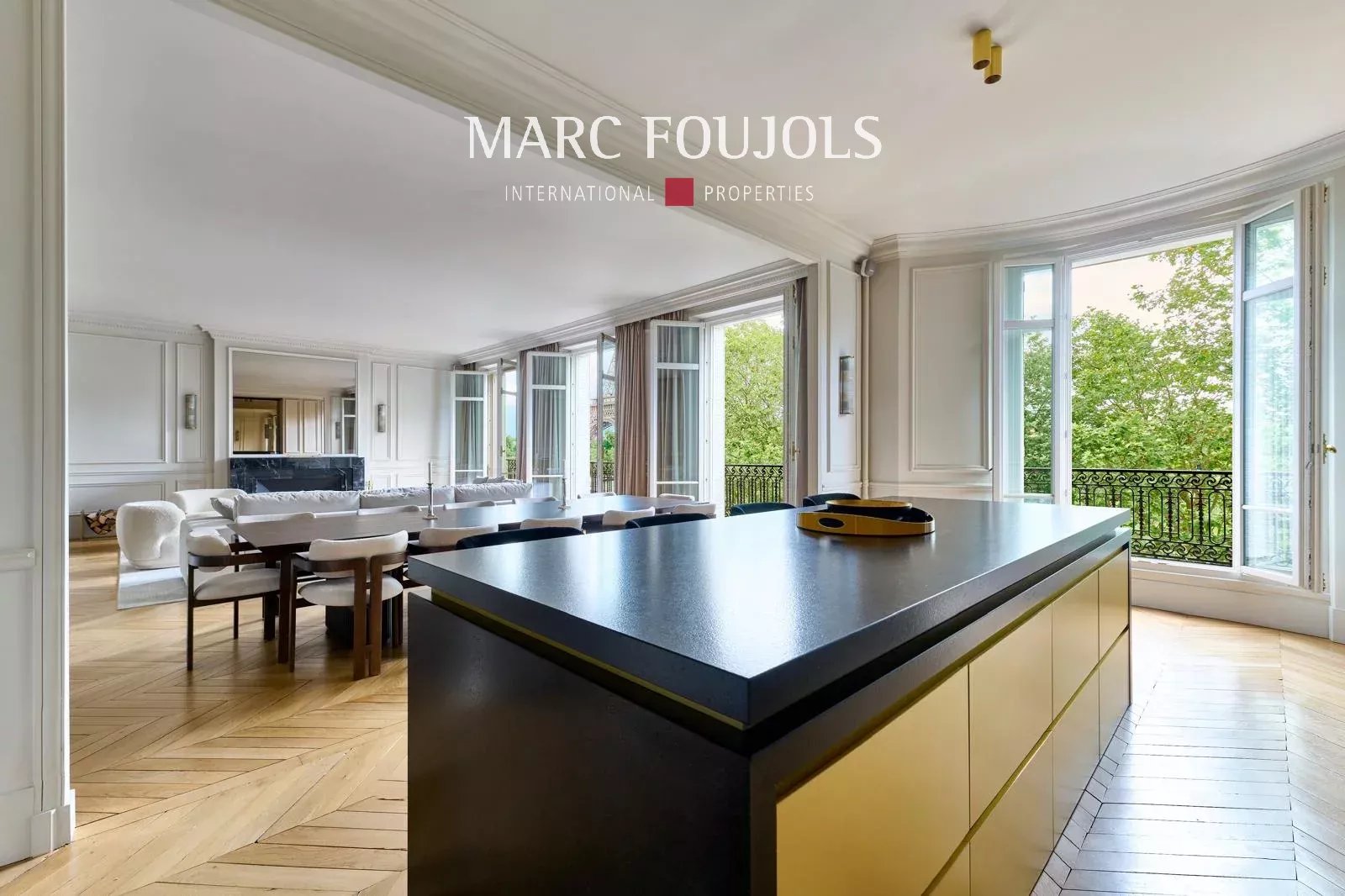 Ideally located a few steps from the Trocadéro Esplanade with a view of the Seine and the Eiffel Tower, this exceptional 245 sqm fully air-conditioned apartment recently renovated with quality materials is on the 3rd floor with elevator in a beautiful Haussmannian building. It consists of an entrance hall leading to a double reception of nearly 80 sqm, flooded with light thanks to its wide south-facing openings, offering an unobstructed view of the Eiffel Tower, followed by an open equipped kitchen with a central island. The perfectly independent sleeping area comprises a 20 sqm master suite with custom-made dressing room and bathroom. Two other bedrooms each with their own bathroom, a 22 sqm cinema room, which can be converted into a fourth bedroom completes this level. A private 25 sqm gym is located on the ground floor. Two cellars complete this exceptional property. Possibility of parking nearby.Details