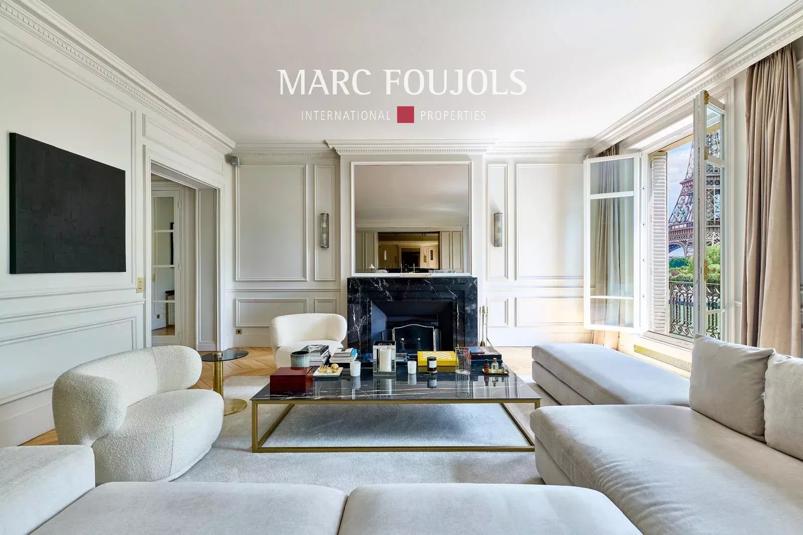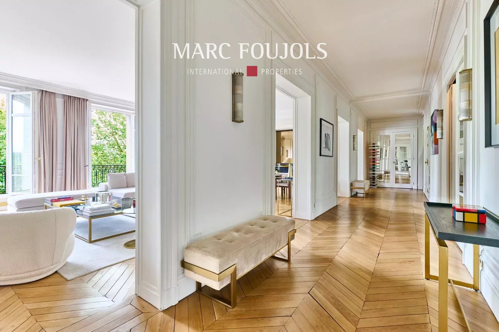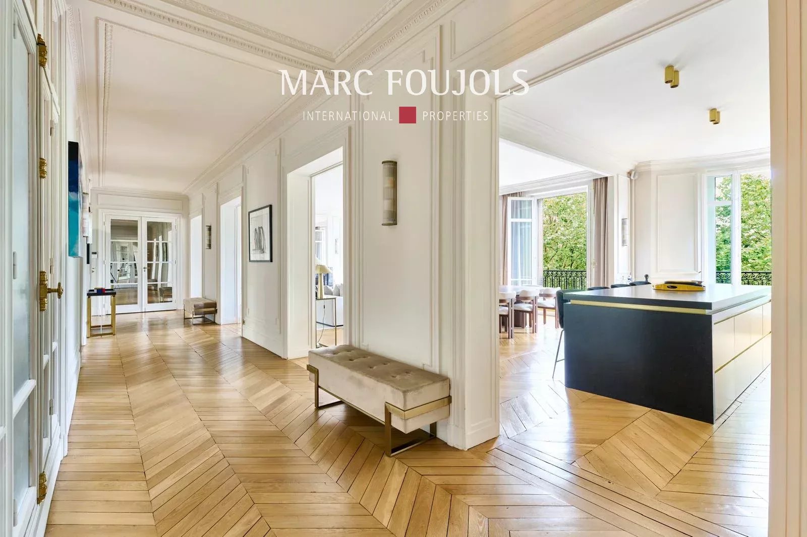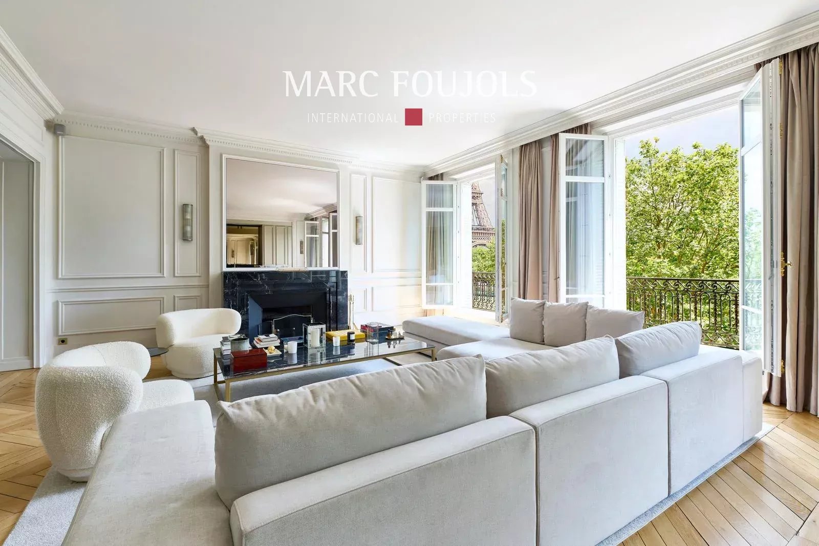 Ideally located a few steps from the Trocadéro Esplanade with a view of the Seine and the Eiffel Tower, this exceptional 245 sqm fully air-conditioned apartment recently renovated with quality materials is on the 3rd floor with elevator in a beautiful Haussmannian building. It consists of an entrance hall leading to a double reception of nearly 80 sqm, flooded with light thanks to its wide south-facing openings, offering an unobstructed view of the Eiffel Tower, followed by an open equipped kitchen with a central island. The perfectly independent sleeping area comprises a 20 sqm master suite with custom-made dressing room and bathroom. Two other bedrooms each with their own bathroom, a 22 sqm cinema room, which can be converted into a fourth bedroom completes this level. A private 25 sqm gym is located on the ground floor. Two cellars complete this exceptional property. Possibility of parking nearby.Details