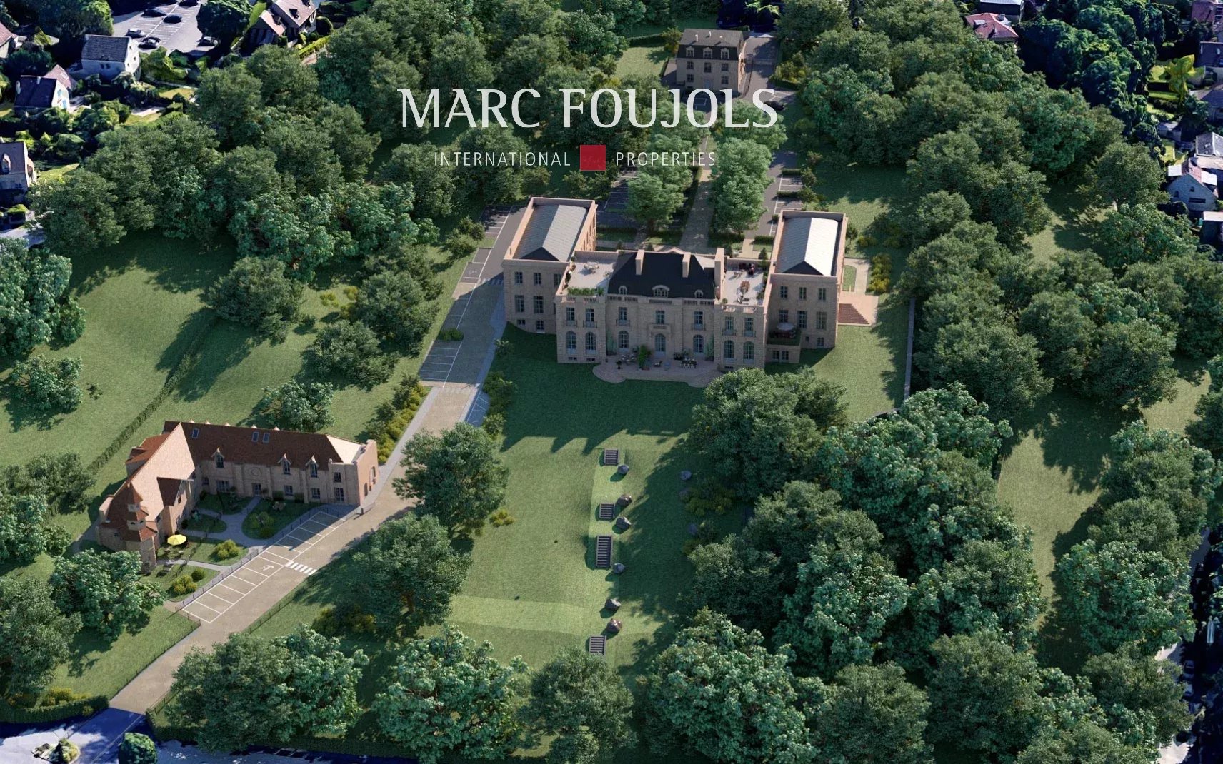 Located 15 km from Paris and La Défense, in a listed park just a stone's throw from Saint-Germain-en-Laye, Château de Grandchamp was built by the Dior family, and will be completely renovated for residential use. Scheduled for completion in June 2026. The heritage apartment is located on the garden level, and comprises an entrance hall, a living room opening onto a 57.6m2 private terrace, a fitted kitchen, 3 bedrooms including a master suite with en suite bathroom, a shower room and a guest toilet. 2 parking spaces are included in the price. The wooded, protected estate is an invitation to wide-open spaces and strolls among century-old trees. 9min drive from Lycée International de Saint-Germain-en-Laye.Details