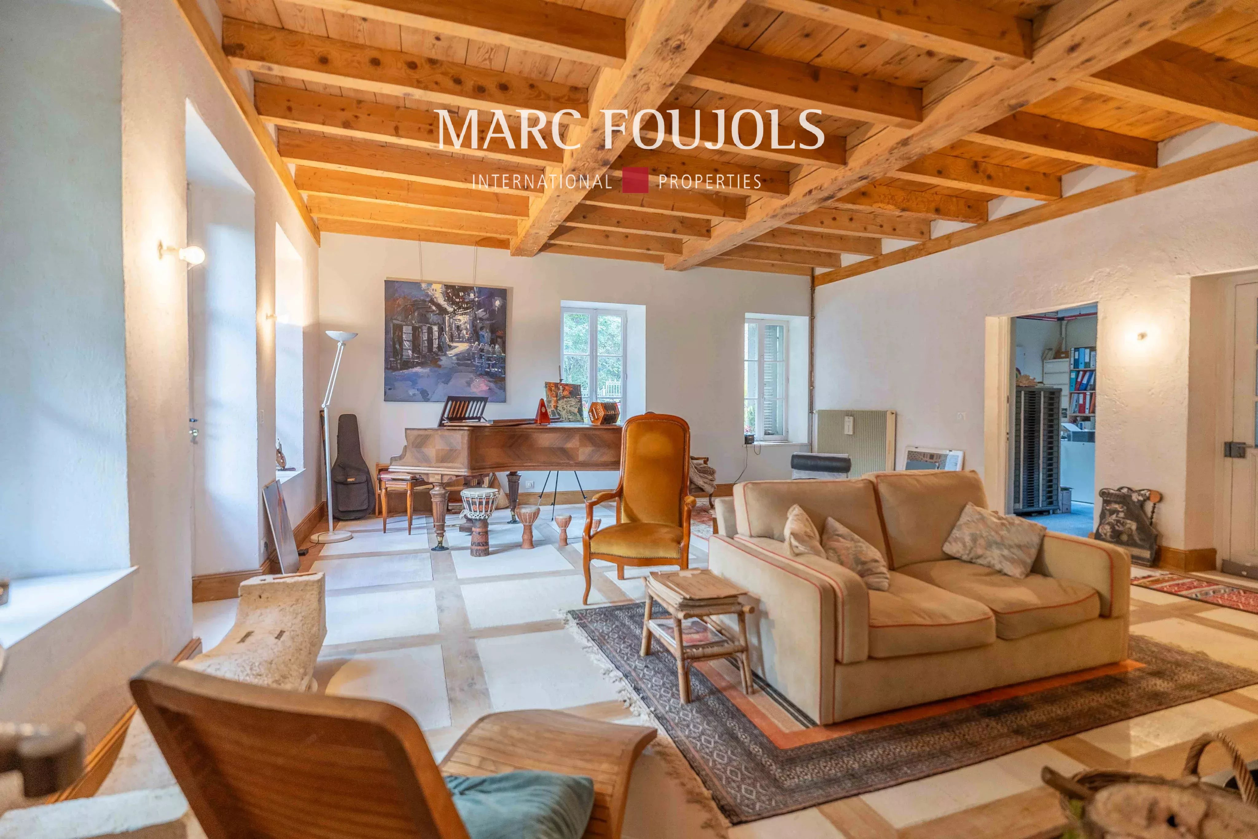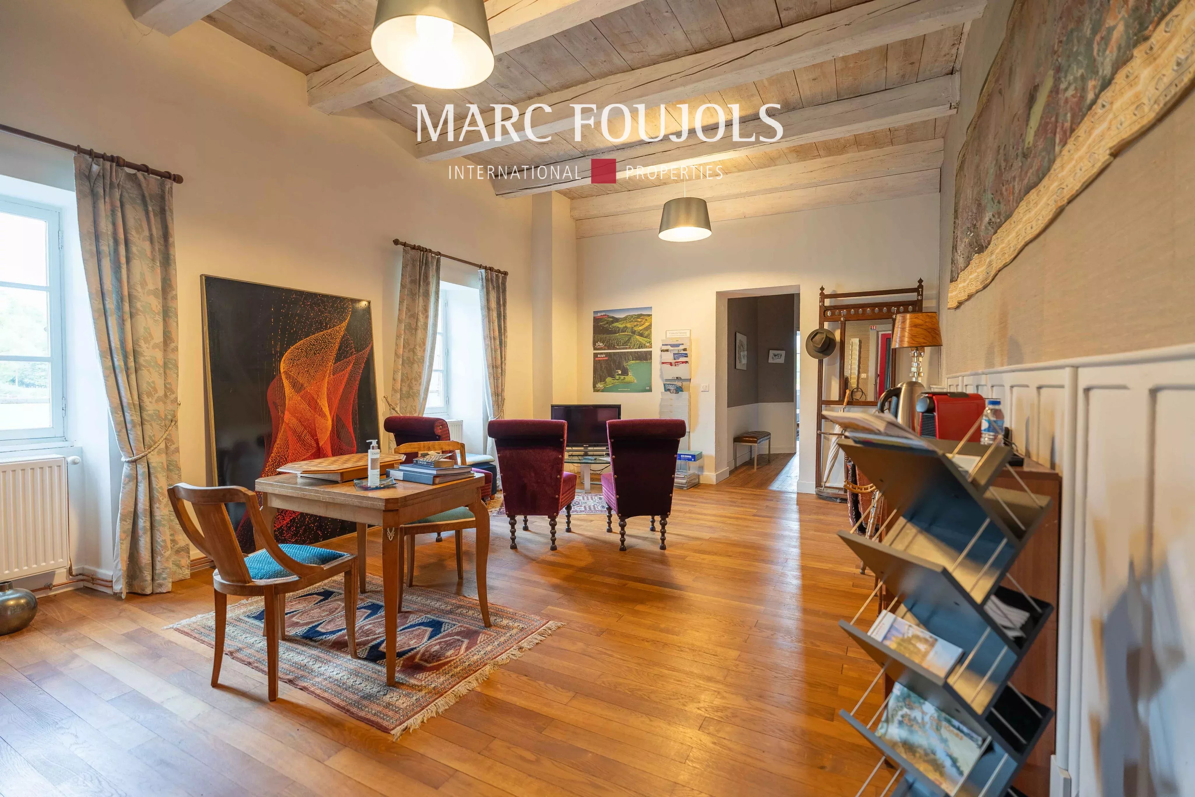 Au cœur du Pays du Valromey, dans un environnement naturel préservé, cette remarquable propriété de caractère offre un cadre de vie rare, entre Lyon, Aix-les-Bains et Genève. Idéalement située, elle bénéficie d’un accès rapide aux gares, écoles, commerces et services médicaux, tout en conservant la quiétude d’un domaine de campagne. Établie au sein d’un superbe parc arboré de plus de trois hectares, cette propriété d’exception développe environ 675 m² habitables pour près de 1 100 m² de surfaces utiles, offrant un ensemble harmonieux de bâtiments empreints d’histoire et de charme. Les origines du domaine remontent au XIIIᵉ siècle. Au fil des siècles, les différentes transformations ont su préserver l’âme des lieux tout en apportant le confort nécessaire à la vie contemporaine. Les propriétaires actuels ont entrepris une restauration attentive et progressive, privilégiant des matériaux de qualité et le respect du caractère architectural de l’ensemble. La propriété se compose de plusieurs édifices formant un ensemble authentique et plein de charme : une demeure principale de caractère, cœur historique du domaine une maison indépendante, aujourd’hui aménagée en gîtes un élégant pigeonnier, témoin du passé, offrant un beau potentiel de restauration une dépendance supplémentaire, à réinventer selon vos projets Cette configuration confère au domaine une grande polyvalence, idéale pour un projet familial, touristique ou événementiel. La maison principale séduira immédiatement les amateurs de propriétés anciennes aux volumes généreux et à l’atmosphère chaleureuse. Le rez-de-chaussée, d’environ 300 m² de plain-pied, s’organise autour d’une élégante entrée distribuant : - deux salons de réception - une salle à manger conviviale - une double cuisine - un lumineux jardin d’hiver - un bureau - une buanderie - des toilettes À l’étage, l’espace nuit accueille six chambres, dont trois actuellement exploitées en gîtes indépendants. Quatre d’entre elles disposent déjà de salles de bains privatives, tandis que les deux autres pourraient aisément être aménagées en suites supplémentaires. Un agréable espace bibliothèque complète ce niveau, invitant à la lecture et à la détente. Le dernier étage dévoile un vaste plateau d’environ 280 m² à aménager, offrant de nombreuses possibilités d’aménagement : suites supplémentaires, espaces de réception, bien-être ou loisirs. Le domaine comprend également plusieurs bâtiments annexes : - une maison de gardien, aujourd’hui exploitée en gîte de type T3 d’environ 75 m² - un charmant pigeonnier d’environ 20 m², idéal pour un atelier d’artiste ou un salon d’été - une dépendance d’environ 50 m² à rénover, permettant la création d’un gîte ou d’un espace indépendant supplémentaire. La propriété bénéficie d’équipements contribuant à son confort et à son efficacité énergétique : - chauffage par chaudière à bois déchiqueté - isolation intérieure performante - panneaux solaires - double circulation intérieure grâce à un escalier principal et un escalier de service Le parc, largement plat et généreusement arboré, offre un cadre naturel apaisant et préservé. Grâce à son histoire, ses volumes et la configuration de ses bâtiments, cette propriété se prête à de nombreux projets : - demeure familiale de caractère - résidence secondaire de prestige - activité de gîtes ou chambres d’hôtes, déjà amorcée par les propriétaires actuels - projet touristique ou événementiel Un lieu chargé d’histoire et de charme, où patrimoine, nature et art de vivre se rencontrent harmonieusement.Détails