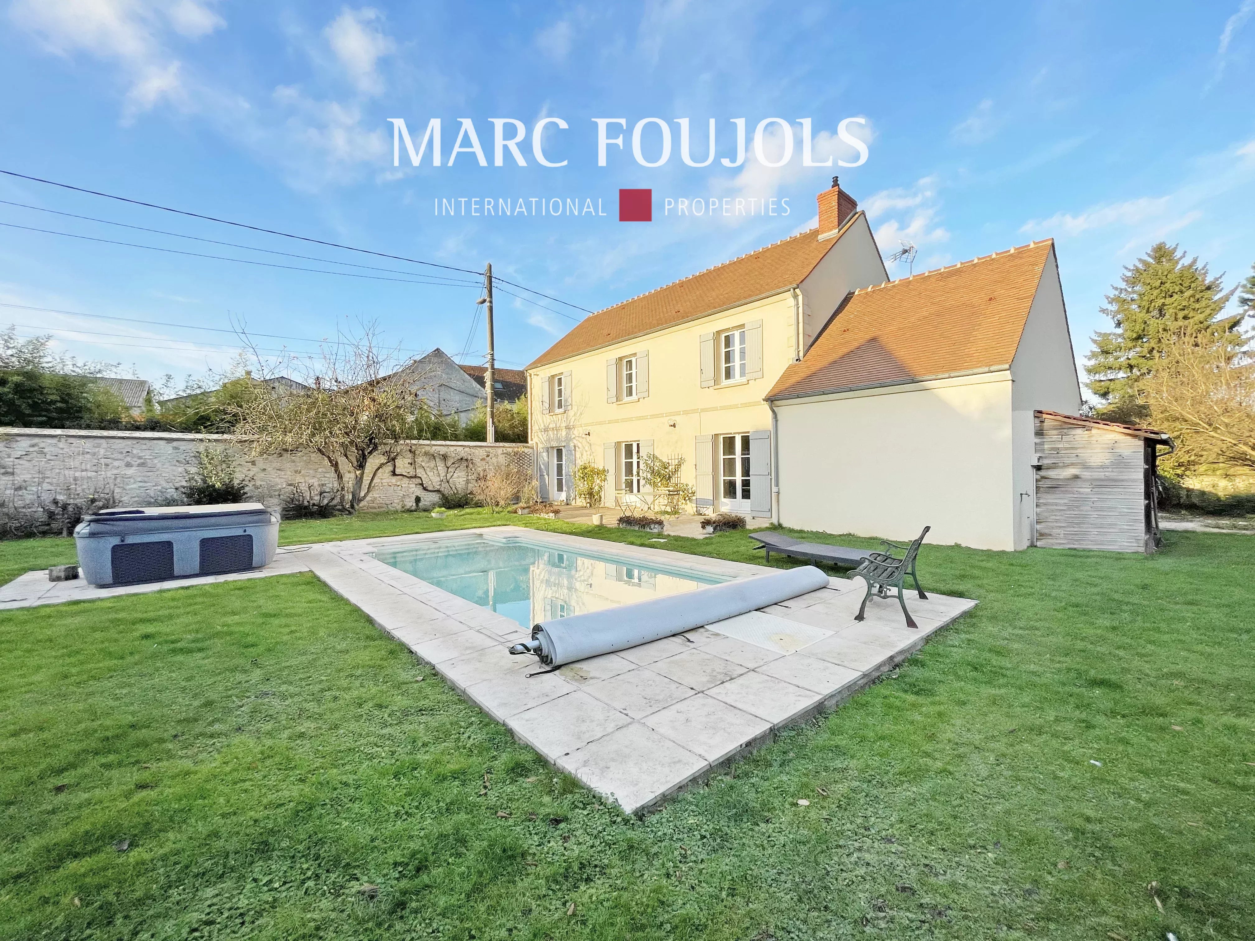 L’agence Marc Foujols vous propose cette élégante maison familiale avec piscine, située au cœur d’un village calme et recherché disposant d’une école primaire, à proximité immédiate des commerces, des transports et de la gare SNCF. La maison s’ouvre sur une entrée raffinée avec vestiaire, menant à un vaste salon–salle à manger baigné de lumière grâce à son exposition sud-ouest, sublimé par un sol en travertin et une cheminée. La cuisine aménagée, bénéficiant de la même orientation, profite d’une luminosité optimale tout au long de la journée. Un bureau ou une chambre en rez-de-chaussée complète ce niveau. À l’étage, un palier dessert quatre chambres confortables, une salle de bains ainsi qu’une salle de douche. À l’extérieur, le terrain entièrement clos de murs en pierre offre un cadre intime et chaleureux, agrémenté d’une piscine idéalement orientée plein sud.Détails