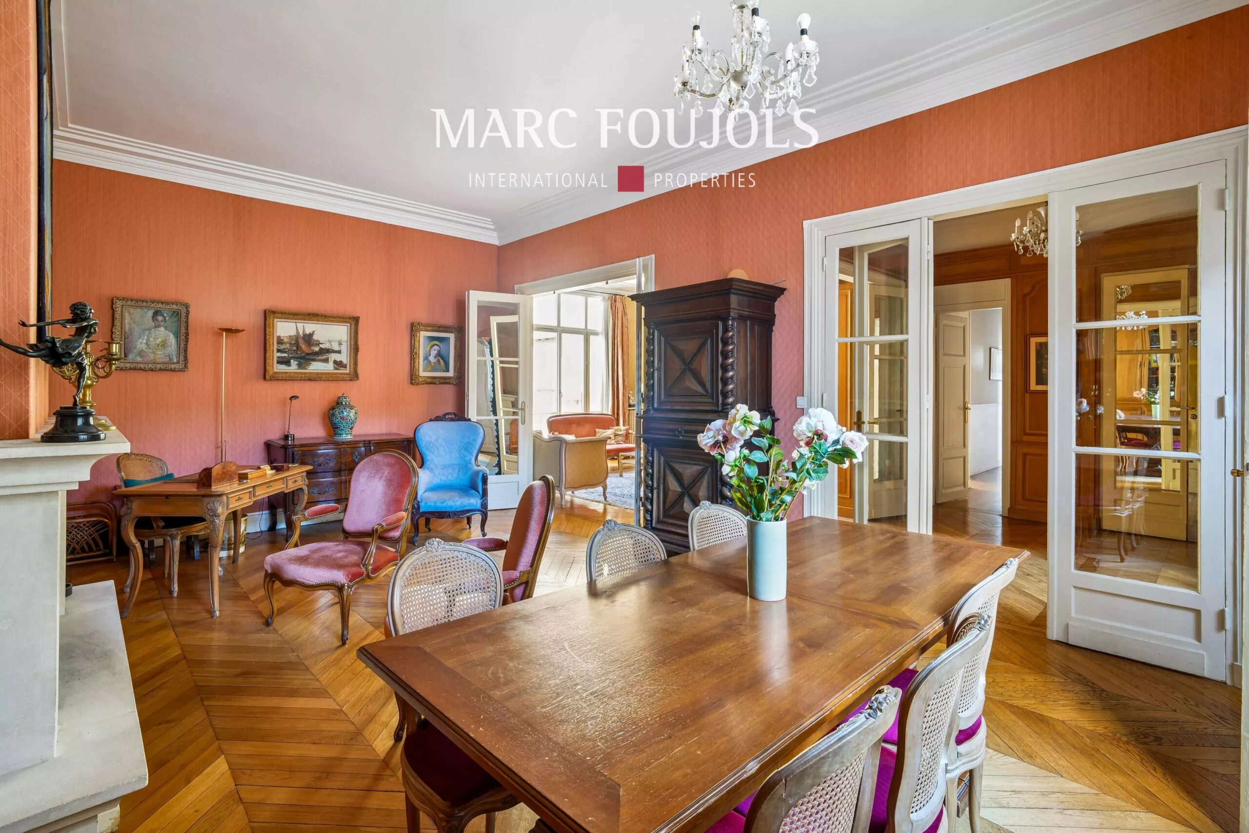 Au sein d'un quartier recherché de Neuilly-sur-Seine, en lisière du bois de Boulogne, Square du Capitaine Claude Barrès, dans une résidence sécurisée (digicode, interphone, et gardien) bien tenue des années 1930, nous vous proposons à la vente cet appartement familial d'une surface de 157m² au troisième étage avec ascenseur. À proximité immédiate de toutes commodités (station de Métro "Les Sablons" ligne 1, et de nombreux commerces), il se compose d'une agréable galerie d'entrée, d'un spacieux double séjour (46m² environ) avec cheminée et vue dégagée, de trois chambres et d'un bureau (18.08m² - 18.65m² - 9.01m² - 7.76m²), de deux salle de bains, d'une buanderie, de deux toilettes, de nombreux rangements et d'une cave. Ce bien jouit de quatre expositions, dont l'Est est la principale. Cet appartement qui nécessite une rénovation dans son ensemble, à conservé son charme de l'ancien, grâce à ses boiseries, ses moulures, ses cheminées, sa hauteur sous plafond (3m30) et ses fenêtres en arrondies. Taxes Foncières 2025 : 2 300 € Charges trimestrielles : 2 500 € (chauffage inclut) Parking confortable dans l'immeuble en vente en sus possible au prix de 40 000 €, accessible directement via l'ascenseur.Détails