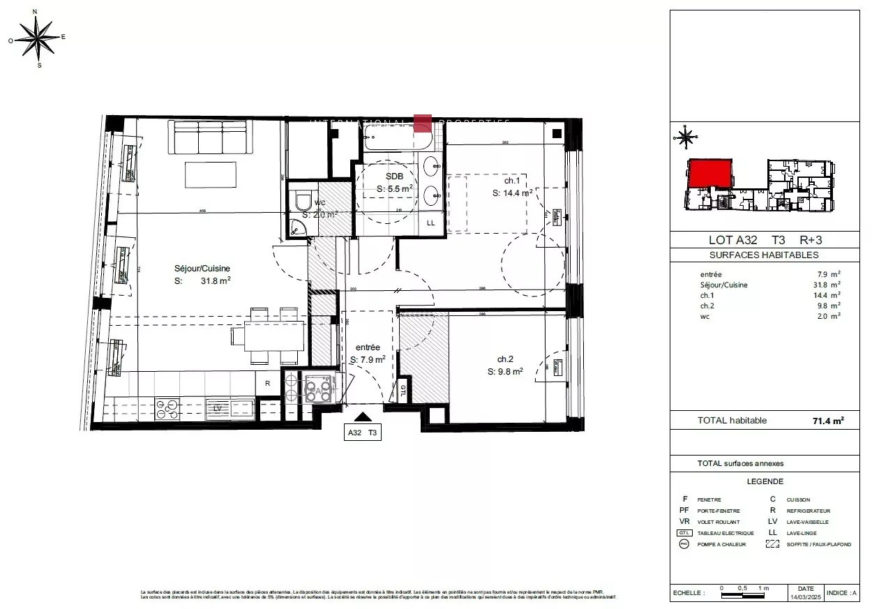 Surface : 71.4m²
